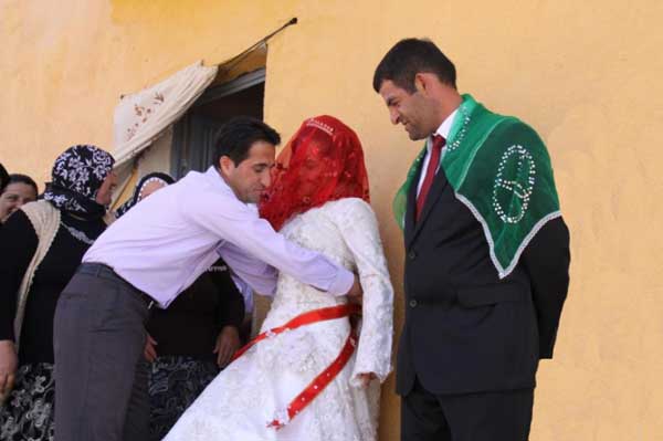 I tyrkiske bryllup knyttes et rødt bånd rundt brudens midje før hun forlater foreldrenes hjem.